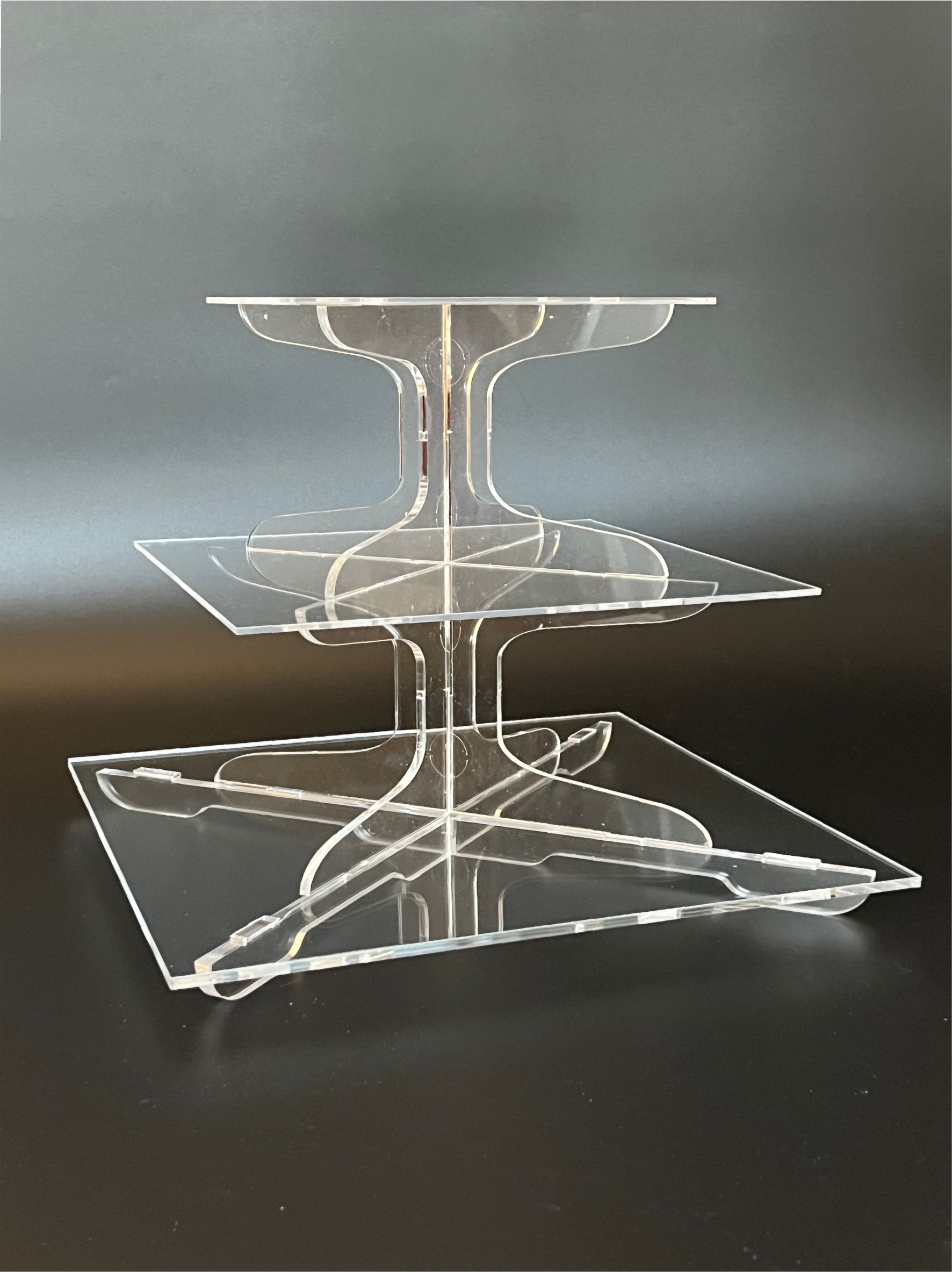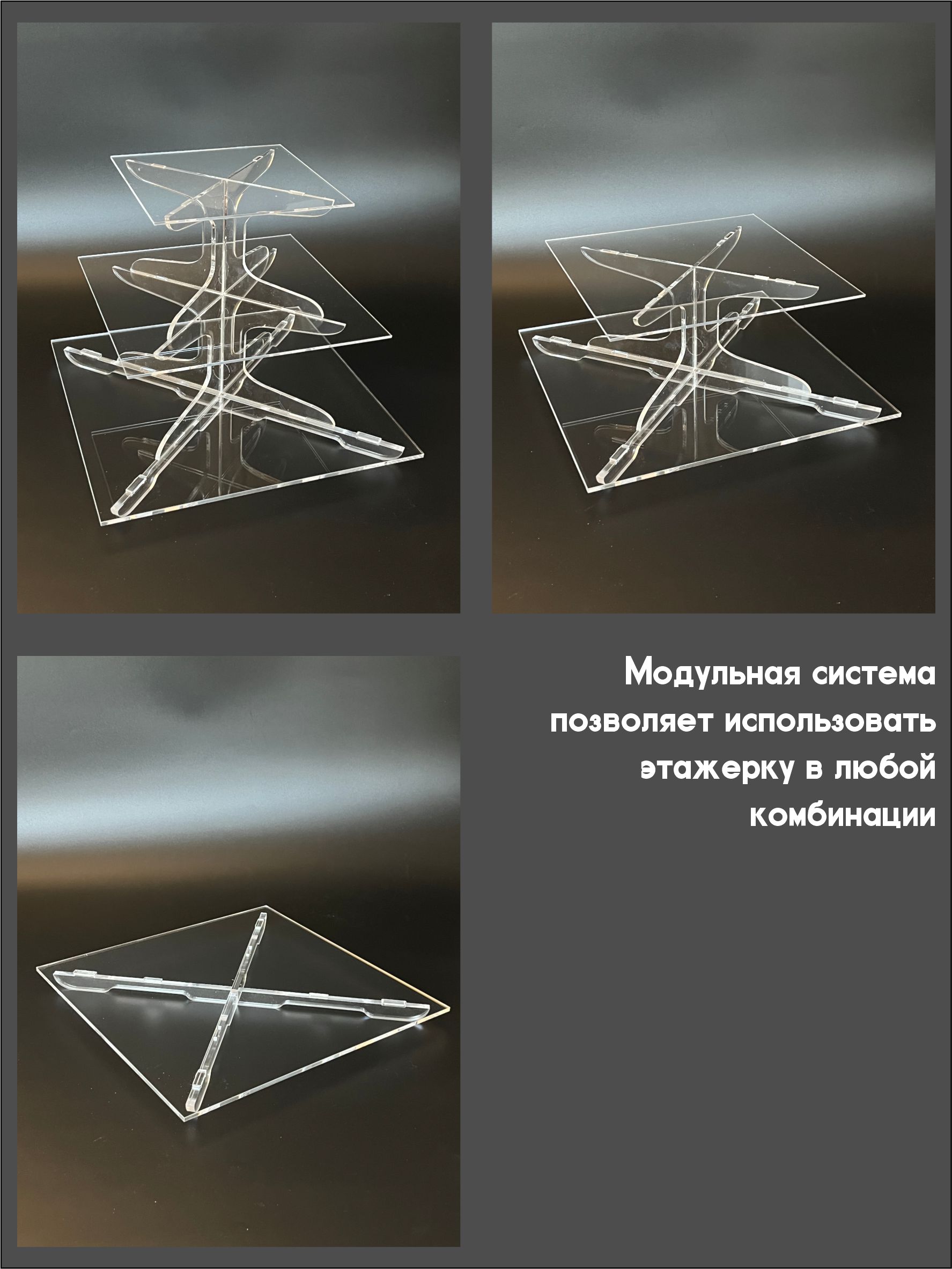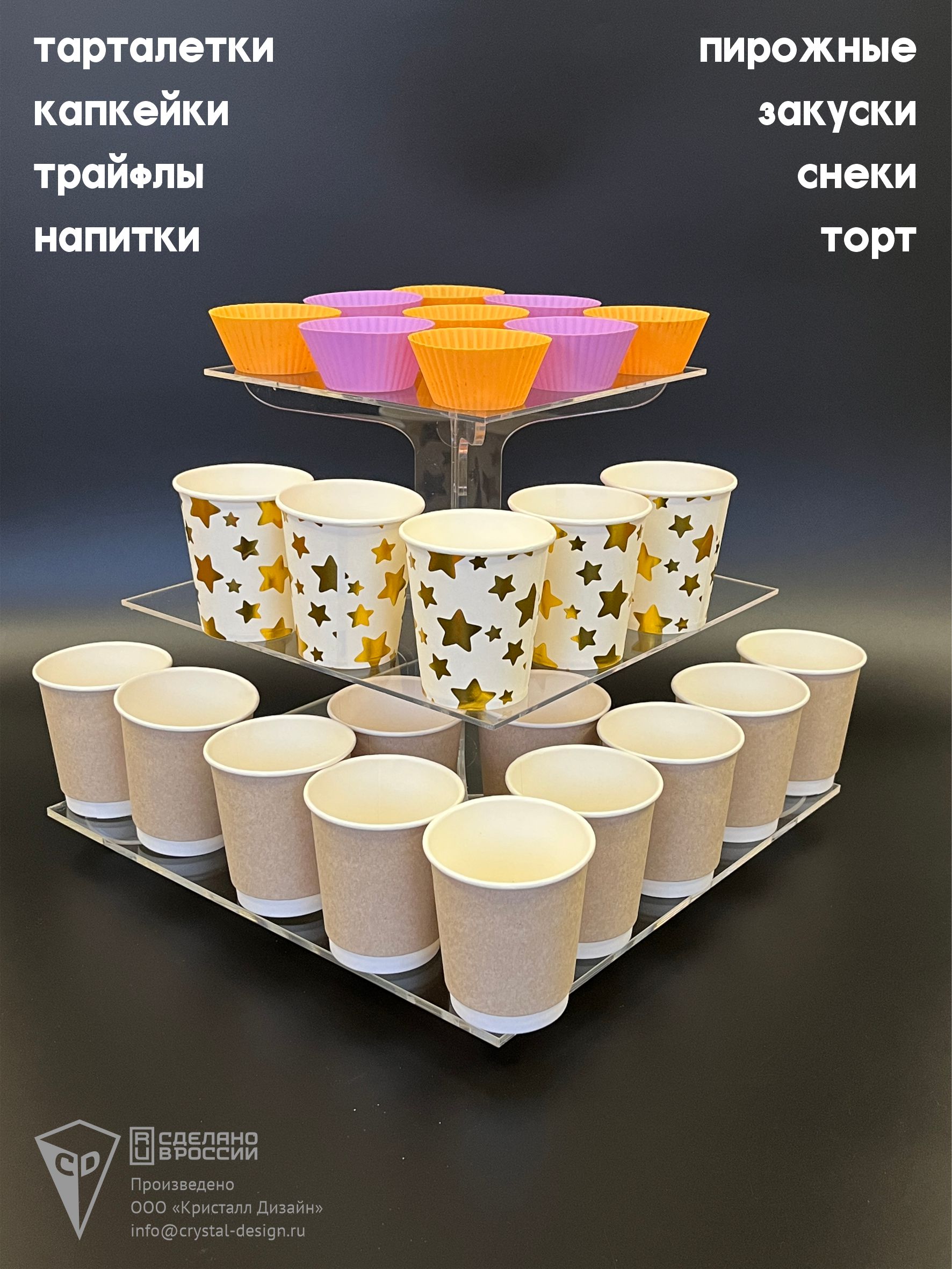 Представьте: ваши капкейки и десерты словно парят в невесомости на этой изящной этажерке! Прозрачные ярусы создают эффект легкости и воздушности, превращая обычный стол в произведение искусства.